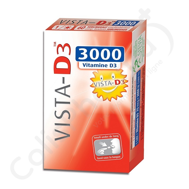 VISTA-D3 est un complément nutrionnel en vitamine D. Un comprimé fondant, facile à ingérer pour tout le monde : on peut le laisser fondre sous la langue (sublingual), le sucer, l’avaler ou le dissoudre dans l’eau !