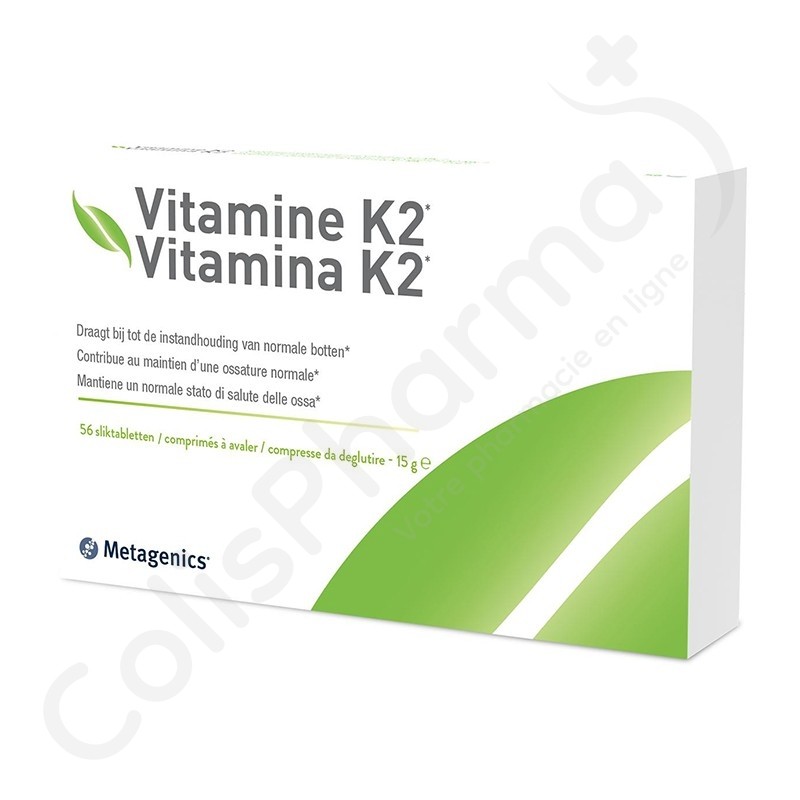 Vitamine K2 contribue à une coagulation sanguine normale et au maintien d'une ossature normale .
