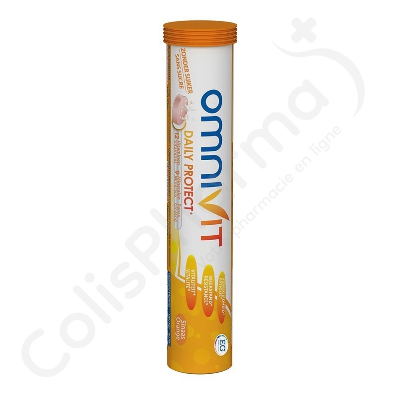 Omnivit Daily Protect est formulé pour une double action. Il stimule chaque jour votre vitalité avec ses vitamines et minéraux, et vous apporte rapidement de l'énergie grâce à un dosage élevé en ginseng. Omnivit Daily Protect est une combinaison parfaite, scientifiquement testée, de trois types d'apport énergétique.
