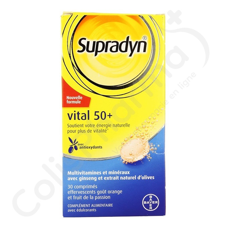Supradyn Vital 50+ a été développé pour les hommes et les femmes dès 50 ans. Prendre 1 comprimé de Supradyn par jour avec de l'eau ou dissoudre 1 comprimé effervescent dans un grand verre d'eau et le boire immédiatement. Prendre Supradyn Vital 50+ à proximité d'un repas, de préférence le matin au petit-déjeuner.