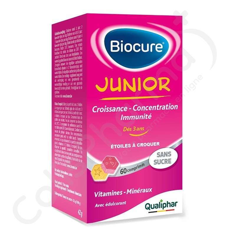 Les enfants ont besoin de vitamines et de minéraux pour grandir et se développer. Biocure® Junior Étoiles à croquer présente une combinaison équilibrée de vitamines et de minéraux, ainsi que de la lutéine et de la taurine. Elles complètent parfaitement le régime alimentaire quotidien.