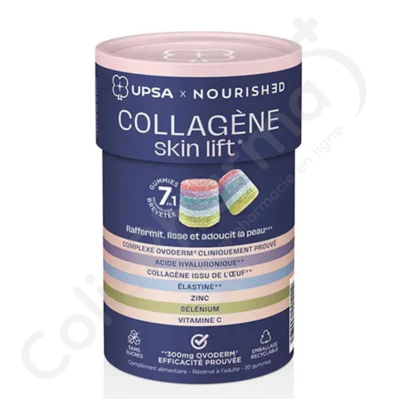 Les gummies UPSA x Nourished Gummies 7-in-1 Collagen Skin Lift sont riches en collagène, élastine, acide hyaluronique, vitamine C, zinc et sélénium et favorisent une peau jeune, ferme et élastique, tout en vous aidant à protéger vos cellules contre le stress oxydatif.