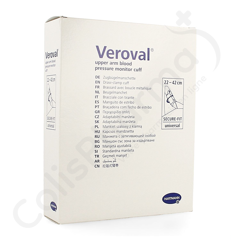 Deze manchet met metalen gesp is voor gebruik met Veroval bloeddrukmeter. Geschikt voor armomtrekken tussen 22 en 42 cm.