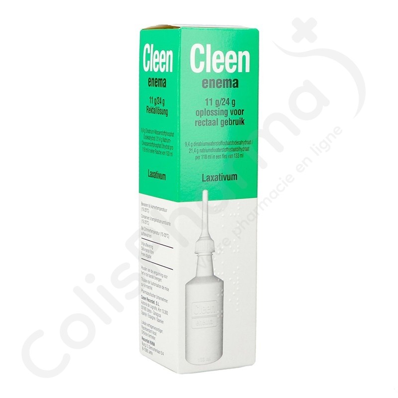 Cleen Enema is een laxerende rectale oplossing (toegediend via de anus) en bevordert de stoelgang. De oplossing bevat fosfaten, die de hoeveelheid water in de darm verhogen en zo de ontlasting zachter maken. Cleen Enema wordt daarom gebruikt voor de symptomatische behandeling van constipatie die ontstaat in de dunne darm.