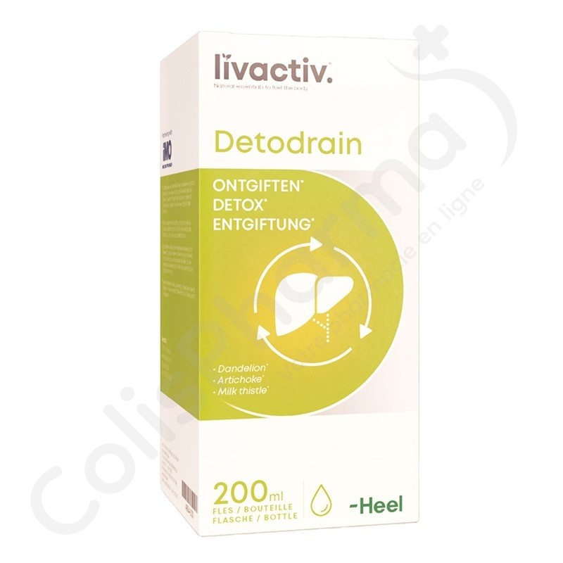 Livactiv Detodrain is een voedingssupplement op basis van 6 krachtige plantenextracten, waaronder paardenbloem, artisjok, wild witlof en distel-marie, erkend voor hun depuratieve en ontgiftende eigenschappen. Ginger en ananas voltooien de formule door een goede digestie te bevorderen. Deze synergie van planten maakt een natuurlijke detox mogelijk en helpt de balans van het lichaam te herstellen. Detodrain is een effectieve oplossing om uw lichaam te zuiveren.