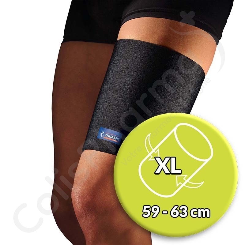 De Neopreen Steunverband voor het Bovenbeen van de Thuasne Sport biedt ondersteuning aan de spieren om spierblessures van de dijspieren te voorkomen tijdens het sporten (bijv. voetbal, atletiek, basketbal, enz.). Ze zijn geschikt om opnieuw te gaan sporten na een spierblessure van het bovenbeen: spierverrekking, -rek of -kneuzing.