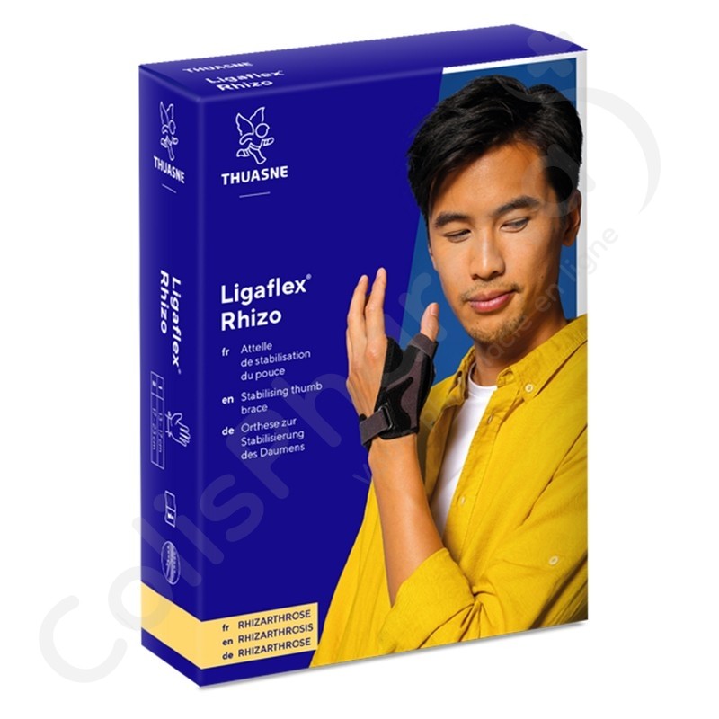 De Ligaflex Rhizo Stabilisatiebrace voor de duim is een duimspalk die het duimgewricht stabiliseert.