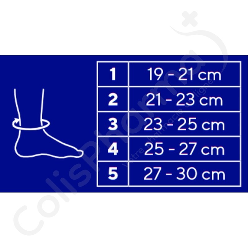 Om de juiste maat voor u te kiezen, meet u uw enkelomtrek zoals hier aangegeven: