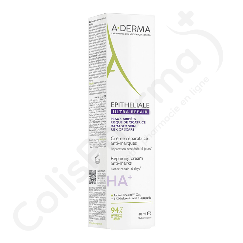 EPITHELIALE ULTRA REPAIR Anti-litteken herstellende crème, maar ook een herstellende crème voor gezicht en lichaam, bevat een gepatenteerd* complex van actieve ingrediënten, CICAHYALUMIDE®, bestaande uit Rhealba® haverextract, dipeptide (Alanylglutamine) en 16 keer meer geconcentreerd hyaluronzuur**.