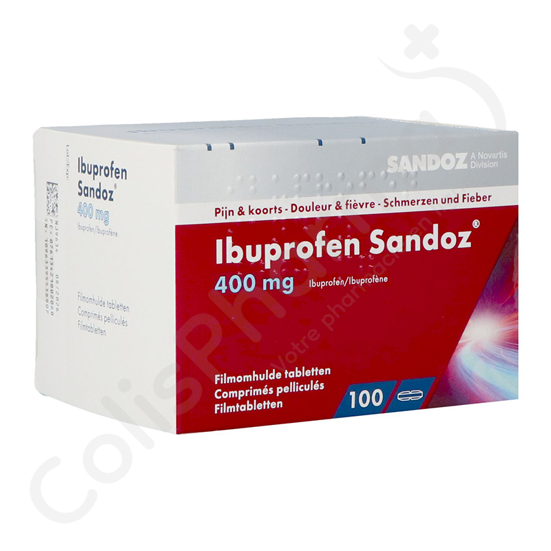 Ibuprofen Sandoz 400 mg: Neem 1 filmomhulde tablet in met een half glas water. Ibuprofen Sandoz dient met voedsel te worden ingenomen.