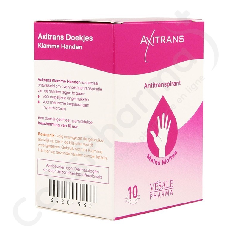 Technische info - Axitrans Klamme Handen - 10 doekjes