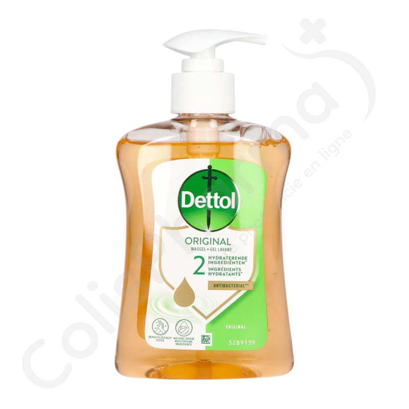 Dettol Original is een handwasgel die helpt de handen van het hele gezin te reinigen en te beschermen. De antibacteriële formule reinigt effectief om de aanwezigheid van bacteriën op de handen te verminderen, terwijl ze schoon en zacht blijven. Verrijkt met 2 natuurlijke hydraterende ingrediënten en dermatologisch getest, respecteert het de natuurlijke pH van de huid en is het geschikt voor dagelijks gebruik.