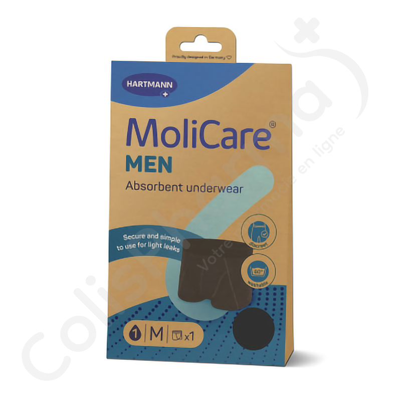 Molicare Men Wasbaar Absorberend Ondergoed 1 Druppel is een wasbaar absorberend ondergoed voor gebruik met Hartmann incontinencieverbanden.