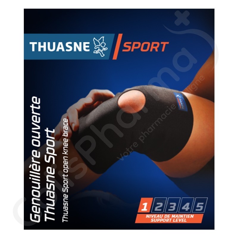 De Thuasne Sport Open Neopreen Kniebrace ondersteunt de knie tijdens het sporten (volleybal, basketbal, voetbal, hardlopen, enz.). De brace is geschikt voor onstabiele of pijnlijke knieën of bij gewrichtsinstabiliteit. De kniebrace is open bij de knieschijf en de elastische stof beperkt warmteverlies. Het verbetert de proprioceptie (waarneming van het lichaam in de ruimte) door het gebruik van een elastische brei en biedt lichte ondersteuning voor de verzwakte knie bij het hervatten van de activiteit of het voorkomen van letsel.