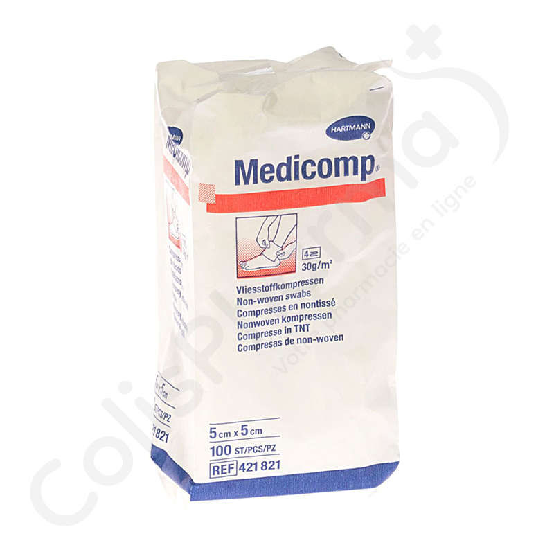 Medicomp vlieskompressen zijn een uitstekend alternatief voor conventionele gaaskompressen in vele toepassingen in ziekenhuizen en poliklinieken. Ze zijn samengesteld uit viscosevezels (70%) en polyestervezels (30%) en hebben een losse gaasachtige structuur die uitstekende absorptie biedt en tegelijkertijd zacht en ademend is