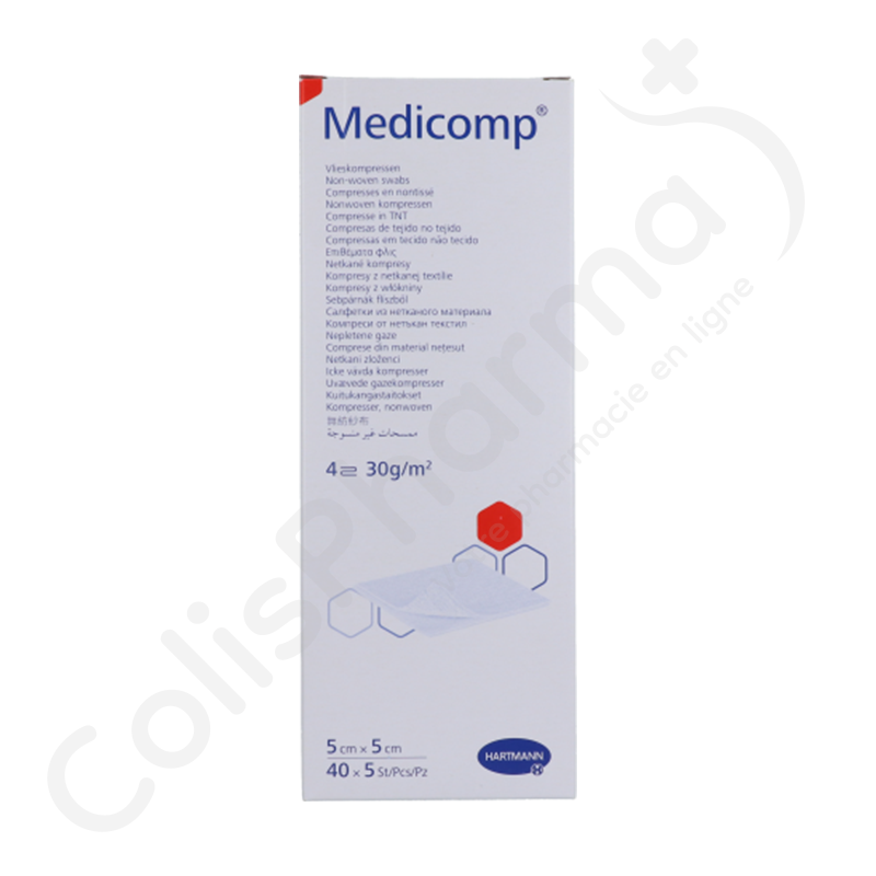 Medicomp vlieskompressen zijn een uitstekend alternatief voor conventionele gaaskompressen in vele toepassingen in ziekenhuizen en poliklinieken. Ze zijn samengesteld uit viscosevezels (70%) en polyestervezels (30%) en hebben een losse gaasachtige structuur die uitstekende absorptie biedt en tegelijkertijd zacht en ademend is