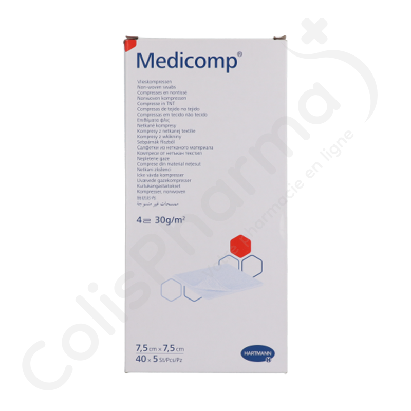 Medicomp vlieskompressen zijn een uitstekend alternatief voor conventionele gaaskompressen in vele toepassingen in ziekenhuizen en poliklinieken. Ze zijn samengesteld uit viscosevezels (70%) en polyestervezels (30%) en hebben een losse gaasachtige structuur die uitstekende absorptie biedt en tegelijkertijd zacht en ademend is.