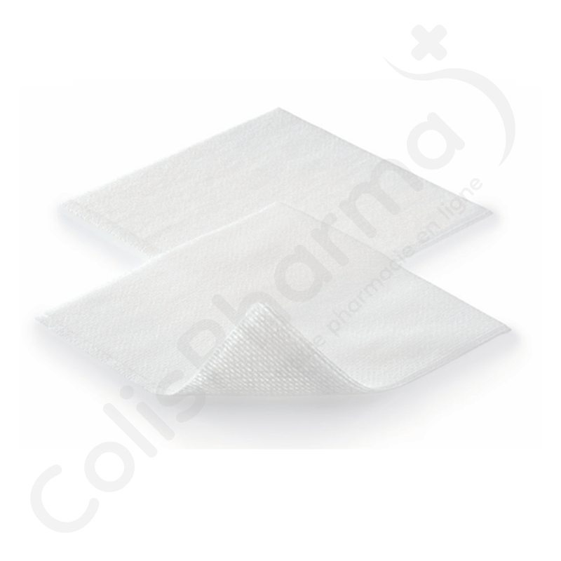 70% viscose en 30% polyester. Niet-geweven materiaal zonder bindmiddelen of optische witmakers. Het product is geclassificeerd als een klasse IIa medisch hulpmiddel, steriel. CE-gemarkeerd in overeenstemming met EU-richtlijn 93/42/EG.