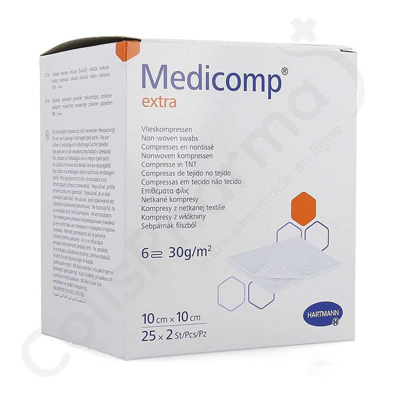 Technische info - Medicomp Extra 10 cm x 10 cm 6 Lagen Steriel - 2 x 25 stuks