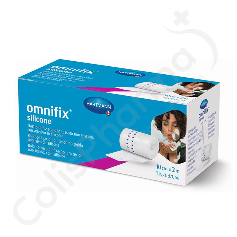De Omnifix siliconen fixatierol is een niet-actief, niet-invasief, zelfklevend en niet-steriel hulpmiddel voor eenmalig gebruik dat bestaat uit een gecoat steunmateriaal, een zelfklevende laag (steunmateriaal) en een filmbeschermde siliconen kleeflaag.