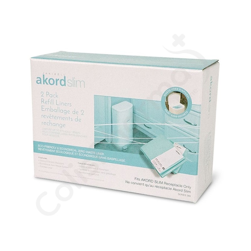 De Janibell Akord Slim 26-liter vuilniszakken worden geleverd in verpakkingen met 2 navullingen.