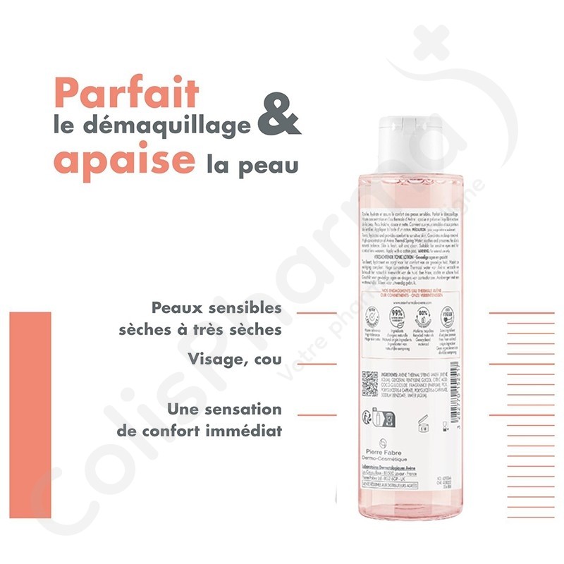Deze milde verzorging is verrijkt met verzachtend en anti-irriterend thermaal water van Avène en geeft de huid direct een comfortabel gevoel. Dankzij de glycerine en PCA hydrateert deze lotion de huid, verfrist ze en zorgt ze voor een goede balans, zelfs bij de meest gevoelige huid. Ideaal om 's ochtends bij het ontwaken en/of 's avonds je make-up perfect te verwijderen.