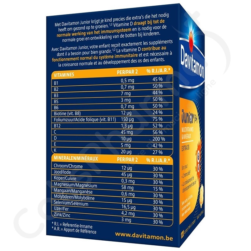 Technische info - Davitamon Junior Multivitaminen Multifruits - 120 tabletten