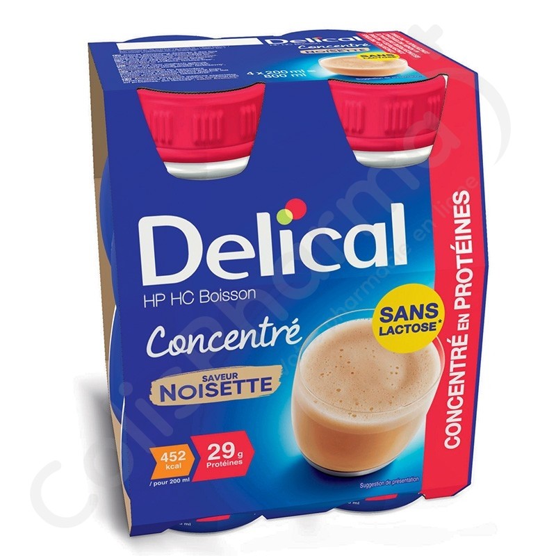 Delical Geconcentreerde Proteïnedrank HP/HC Lactosevrije Hazelnoot - 4x200 ml