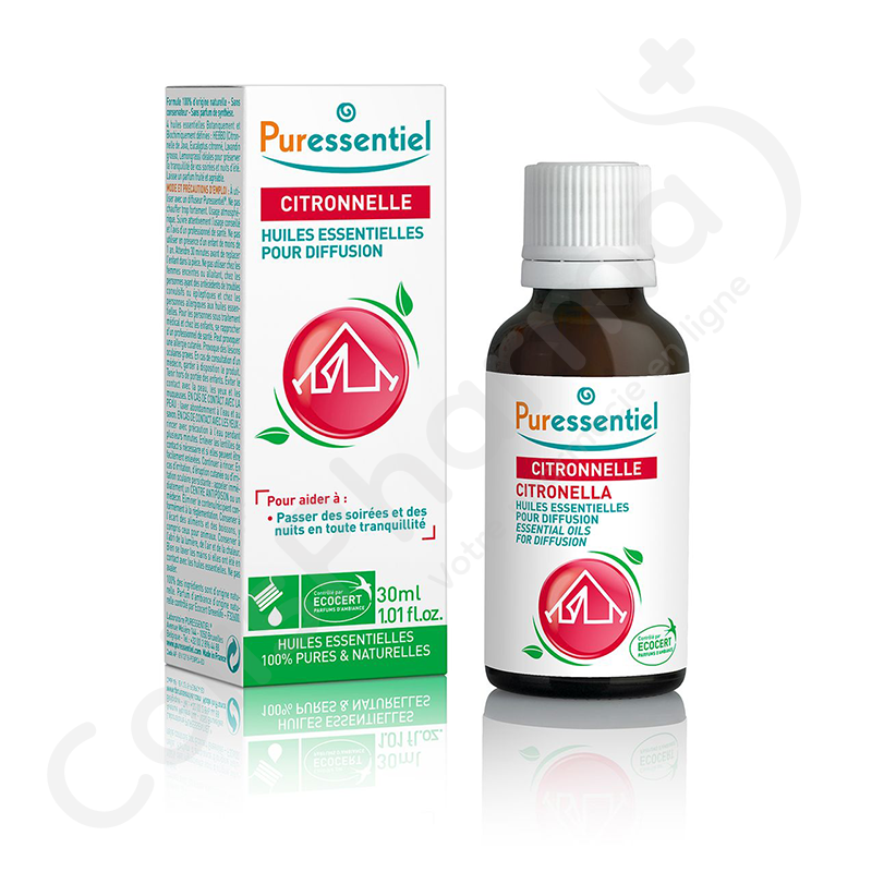 Het Diffuse Citronella-complex met 100% pure en natuurlijke essentiële oliën bevat 4 essentiële oliën: Javaanse Citronella, Citroen Eucalyptus, Lavandin grosso en Citroengras, ideaal om de rust van uw zomeravonden en -nachten te behouden.