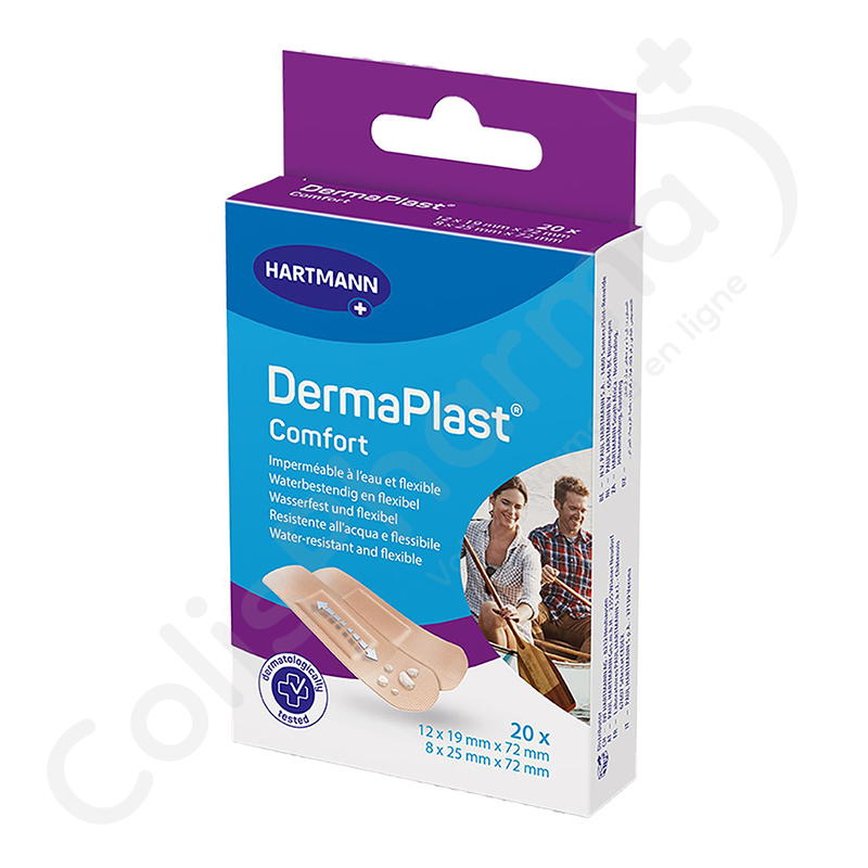 DermaPlast Comfort stroken en kompressen zijn niet-actieve, zelfklevende, niet-steriele hulpmiddelen voor eenmalig gebruik, bestaande uit een met kleefstof bedekt steunmateriaal (dragermateriaal) en een kompres, beschermd door een siliconenpapier, voor de bescherming van kleine wonden (inclusief prikwonden als gevolg van injecties) en de absorptie van exsudaat.
