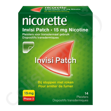 Elke pleister bevat 1,75 mg nicotine/cm². Nicorette Invisi Patch 15 mg heeft een grootte van 13,5 cm².
