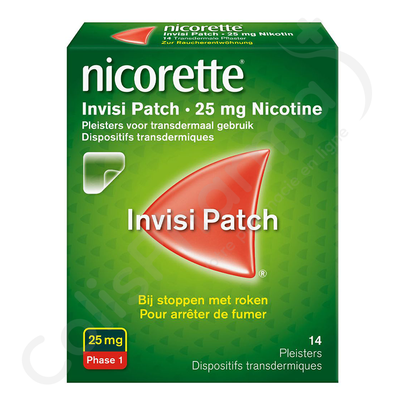 Elke pleister bevat 1,75 mg nicotine/cm². Nicorette Invisi Patch 25 mg heeft een grootte van 22,5 cm².