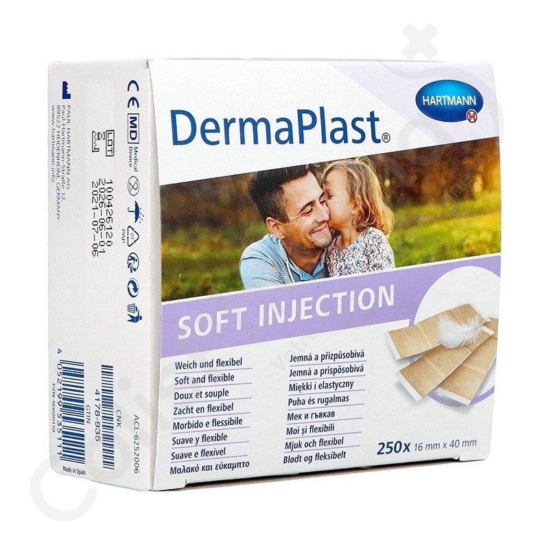 Technische info - DermaPlast Soft Injection Hypoallergene Wondpleisters - 250 verbanden