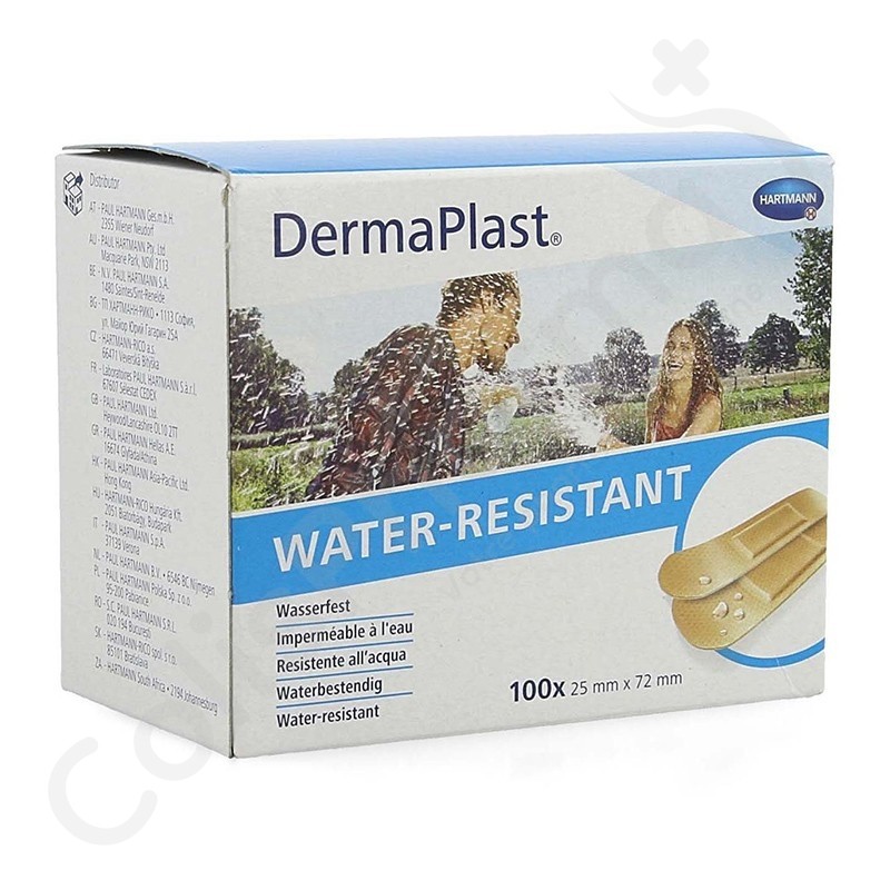 DermaPlast Water Resistant Voorgesneden Pleisters 2,5 cm x 7,2 cm - 100 verbanden