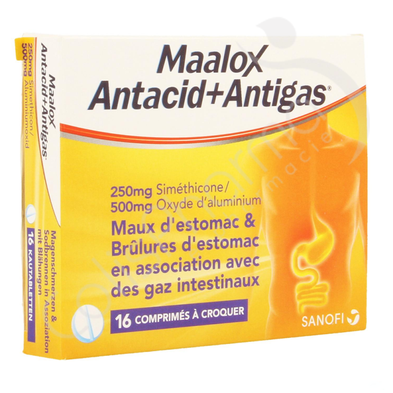 Technische info - Maalox Antacid+Antigas 250 mg/500 mg - 16 kauwtabletten