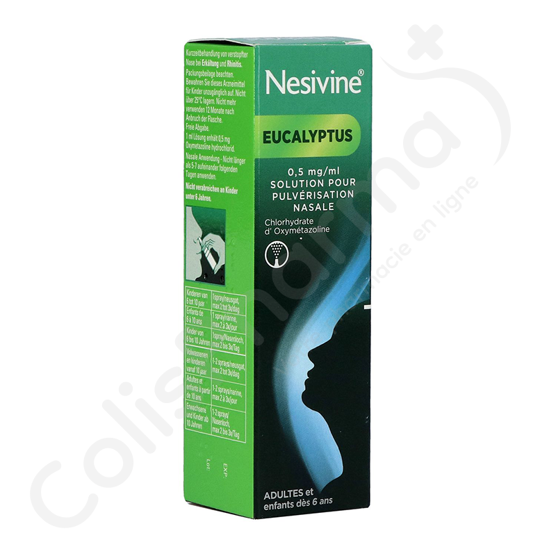 Nesivine Eucalyptus is een neusspray die oxymetazoline bevat en wordt gebruikt ter verlichting van plaatselijke symptomen van neusverstopping bij verkoudheid of rhinitis bij volwassenen en kinderen van 6 jaar en ouder.