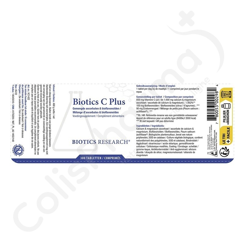 Technische info - Biotics C Plus 1 g - 300 tabletten