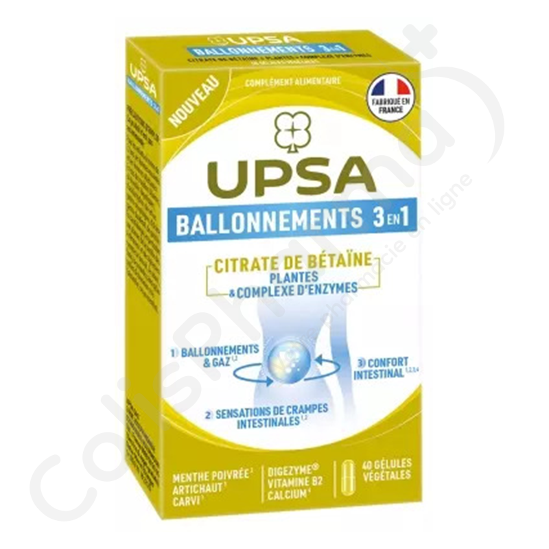 UPSA Bloating 3 in 1 is een voedingssupplement met 3 gerichte werkingen voor een gevoel van spijsverteringswelzijn: