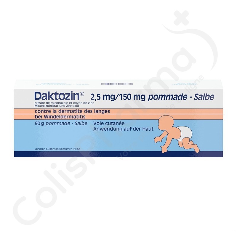Daktozin is een topisch geneesmiddel voor luierdermatitis. Het bevat een antischimmelmiddel (miconazolnitraat) en een lokaal beschermend middel (zinkoxide). De zalf hecht goed en langdurig aan de huid en beschermt deze tegen de irriterende effecten van urine en ontlasting. Dit doodt schimmels en bacteriën snel en de huid herstelt zich snel. Daktozin is geïndiceerd voor baby's en jonge kinderen voor de behandeling van droge en natte vormen van huidontsteking die optreden wanneer urine en ontlasting te lang in contact blijven met de huid in de luierzone (luierdermatitis). Het is niet ongebruikelijk dat op deze plek een bijkomende infectie door schimmels ontstaat.